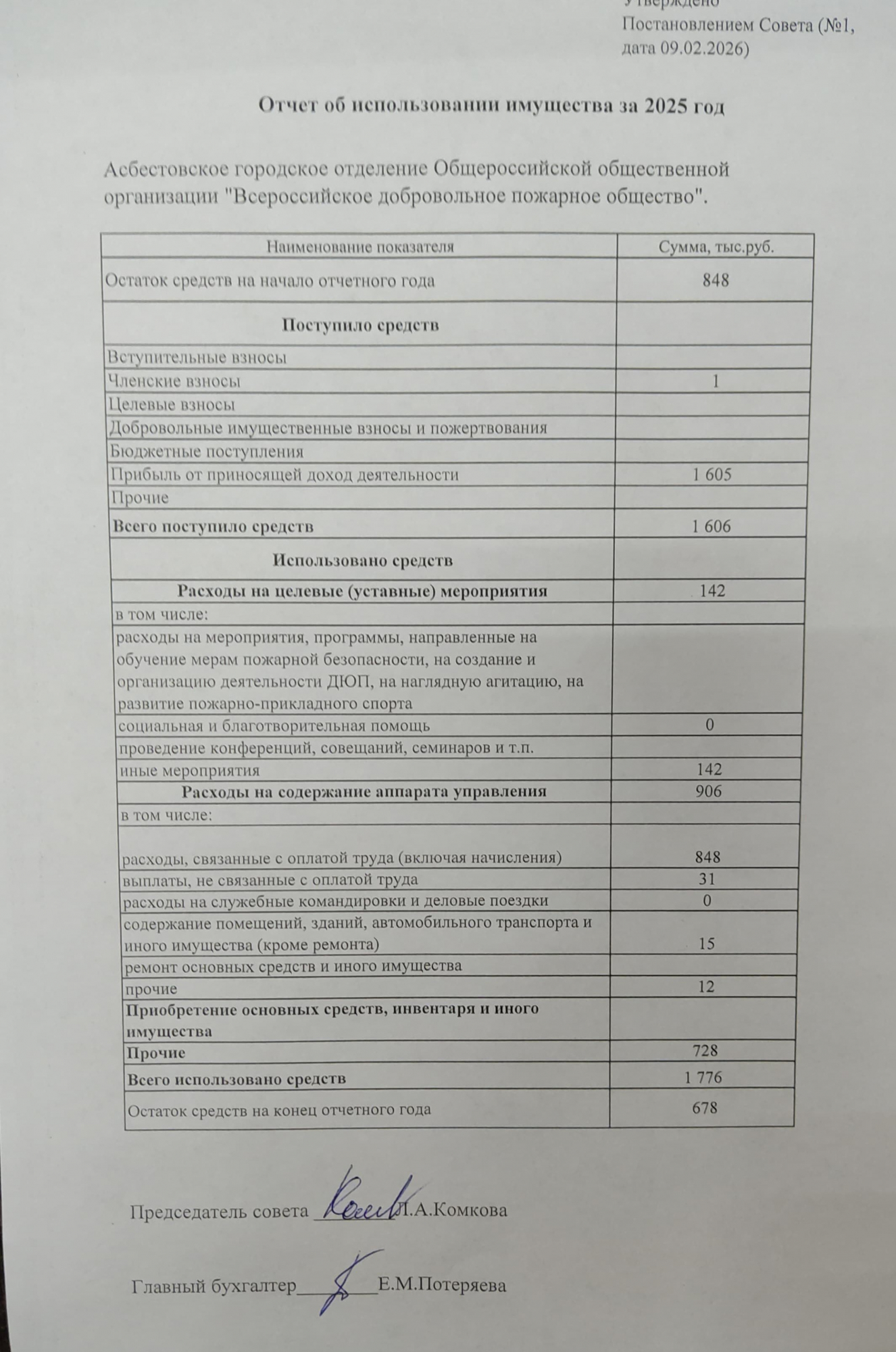 Отчет об использовании имущества за 2025 год.